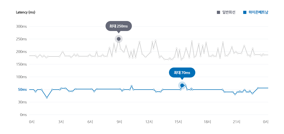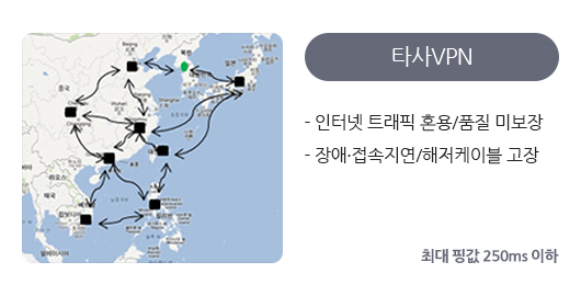 | 접속속도 | 60~250ms(속도 미보장) | 35~70ms(IPLC*급) | 35~70ms(IPLC*급) |